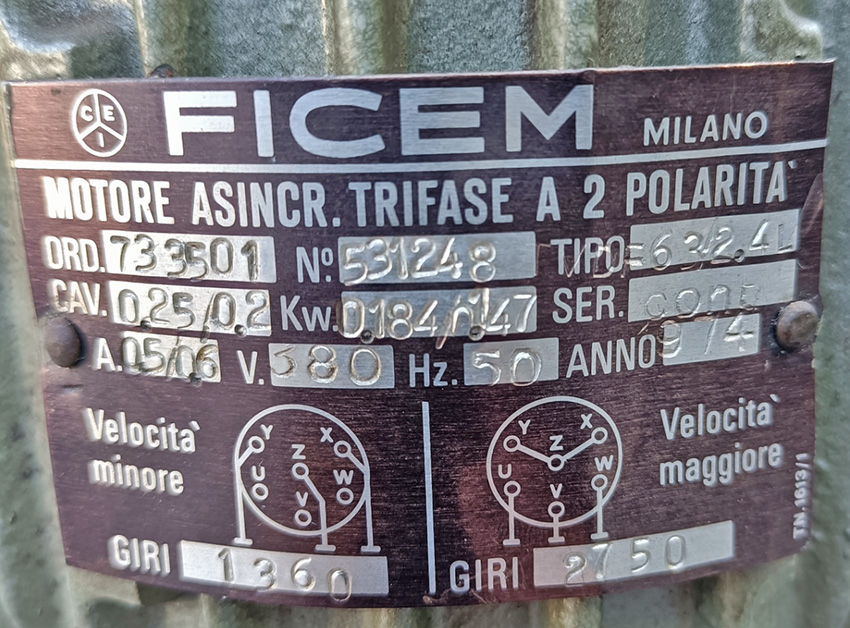 Leistung: 0,184 / 0,147 kW, 380 Volt