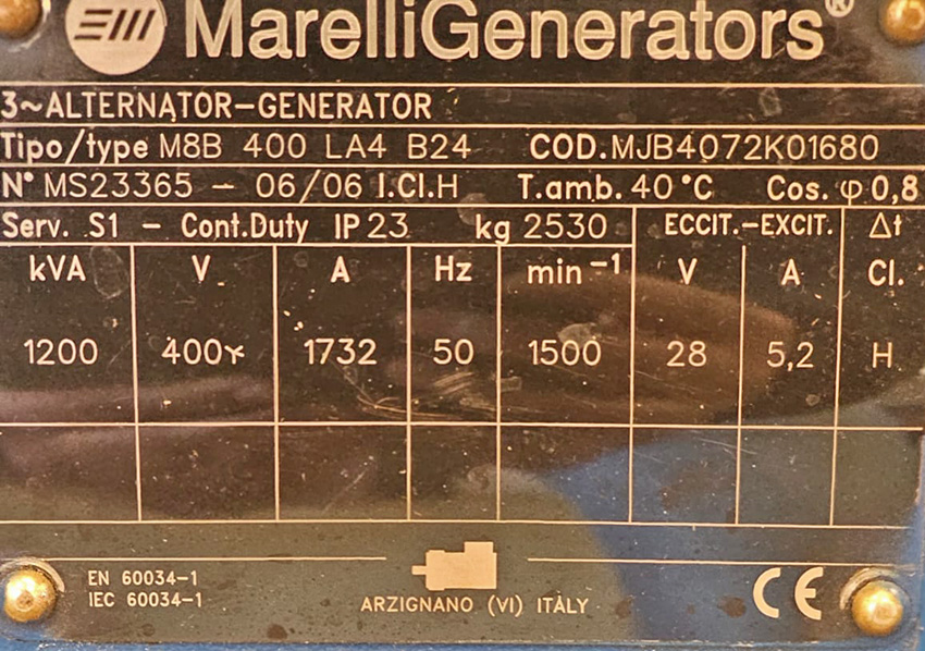 Generator 1200 kVA, Marelli, M8B 400 LA4 B24