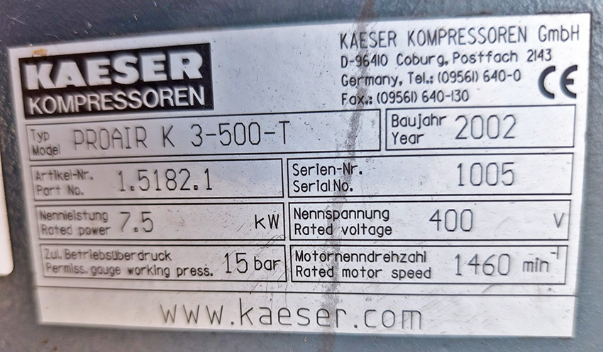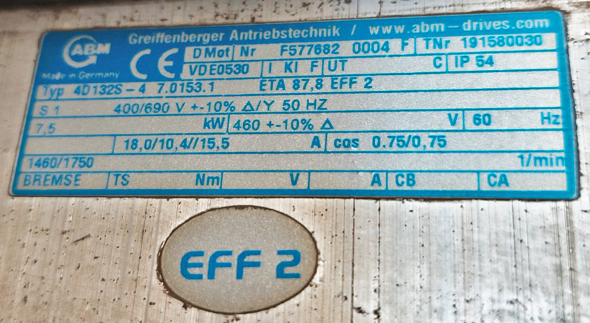Leistung 7,5 kW, 400 Volt, 15 bar, 1460 u/min