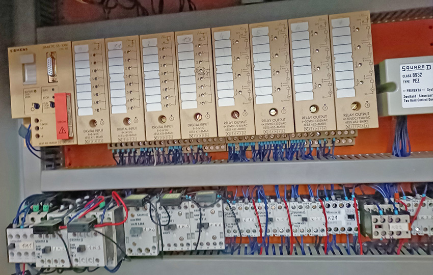 Es fehlen Anschlußteile für Druckluft – Kabel zum Steuerschrank sind abgetrennt – Maschine ist nicht vorführbereit – daher wird die Maschine als defekt verkauft.